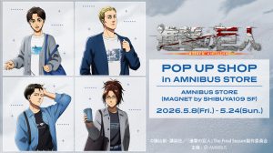 2026年5月8日(金)より「AMNIBUS STORE」にて「TVアニメ『進撃の巨人』POP UP SHOP in AMNIBUS STORE」の開催が決定いたしました。 今回のイベントでは、TVアニメ『進撃の巨人』よ … 続きを読む TVアニメ『進撃の巨人』POP UP SHOP in AMNIBUS STORE